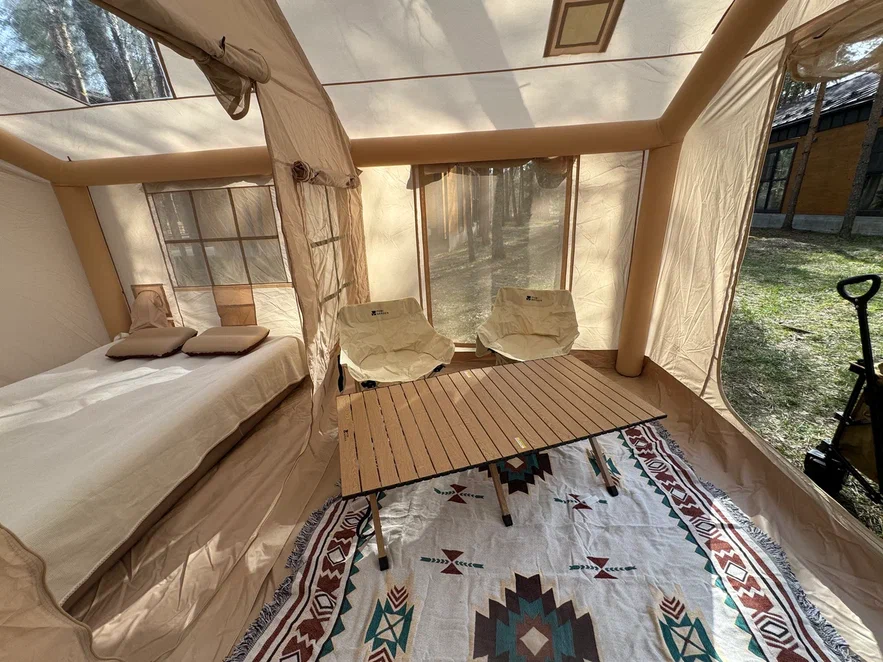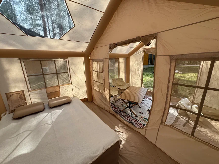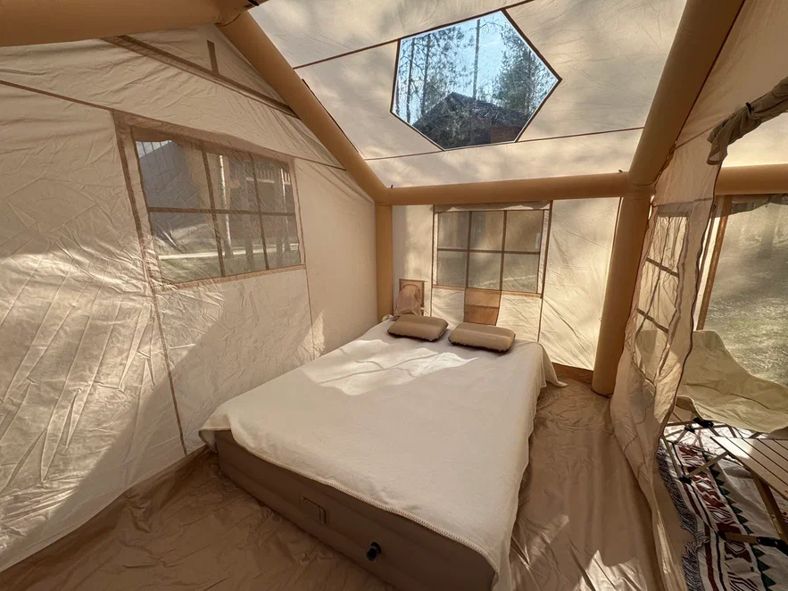 Палатка для кемпинга легко и быстро устанавливается в любом месте , без усилий и временных затрат , приведет в восторг бывалых туристов. Уникальная надежная и простая технология надува палатки позволяет установить палатку за несколько минут.