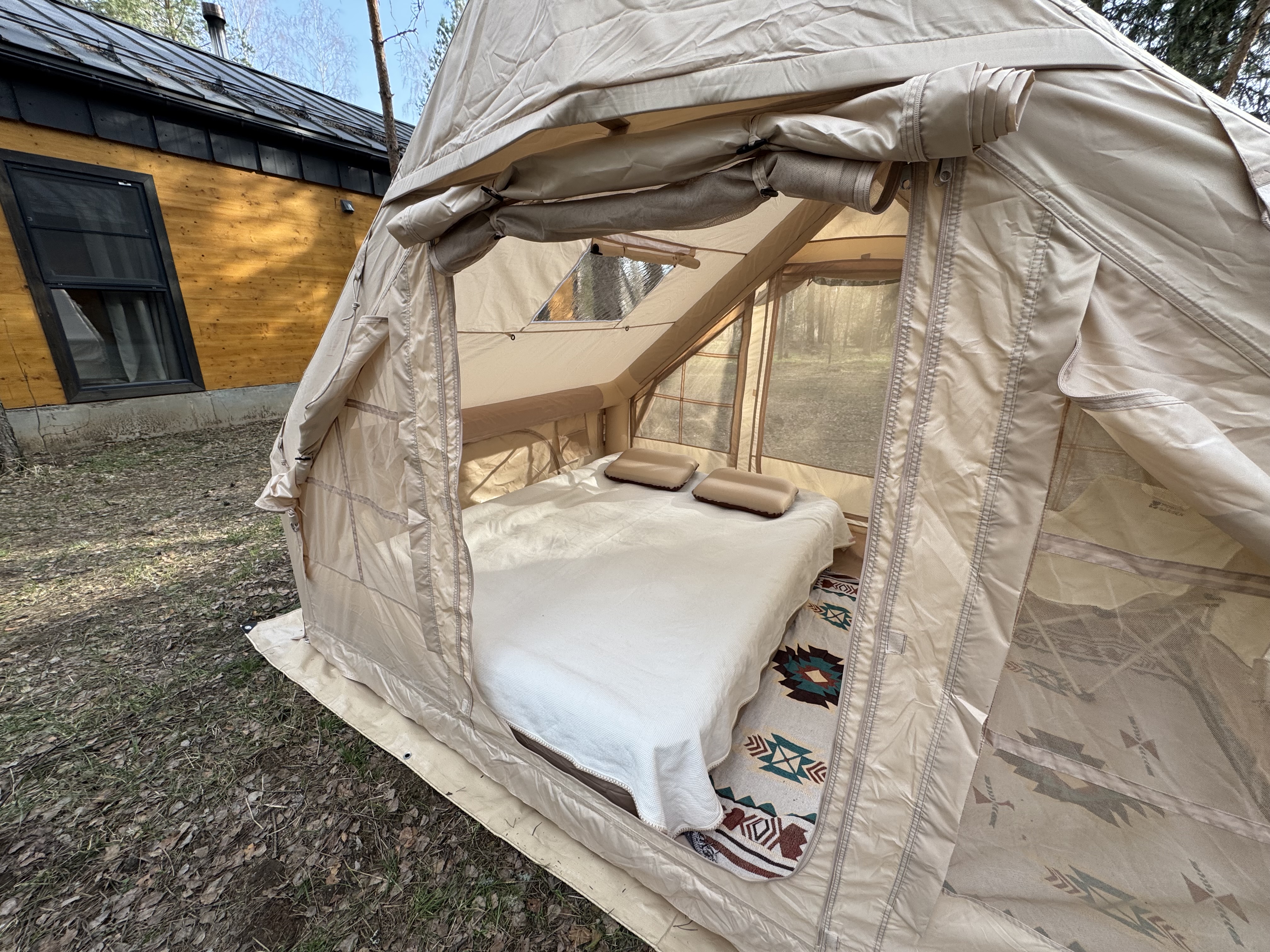 - Имeeт уникaльную тeхнологию надува, что сильно отличается от обычных палаток на рынке.