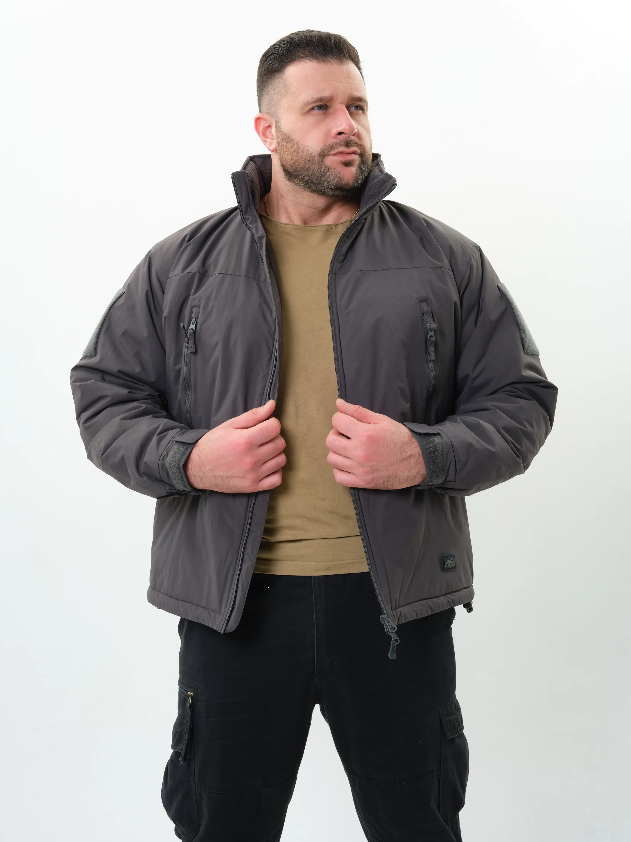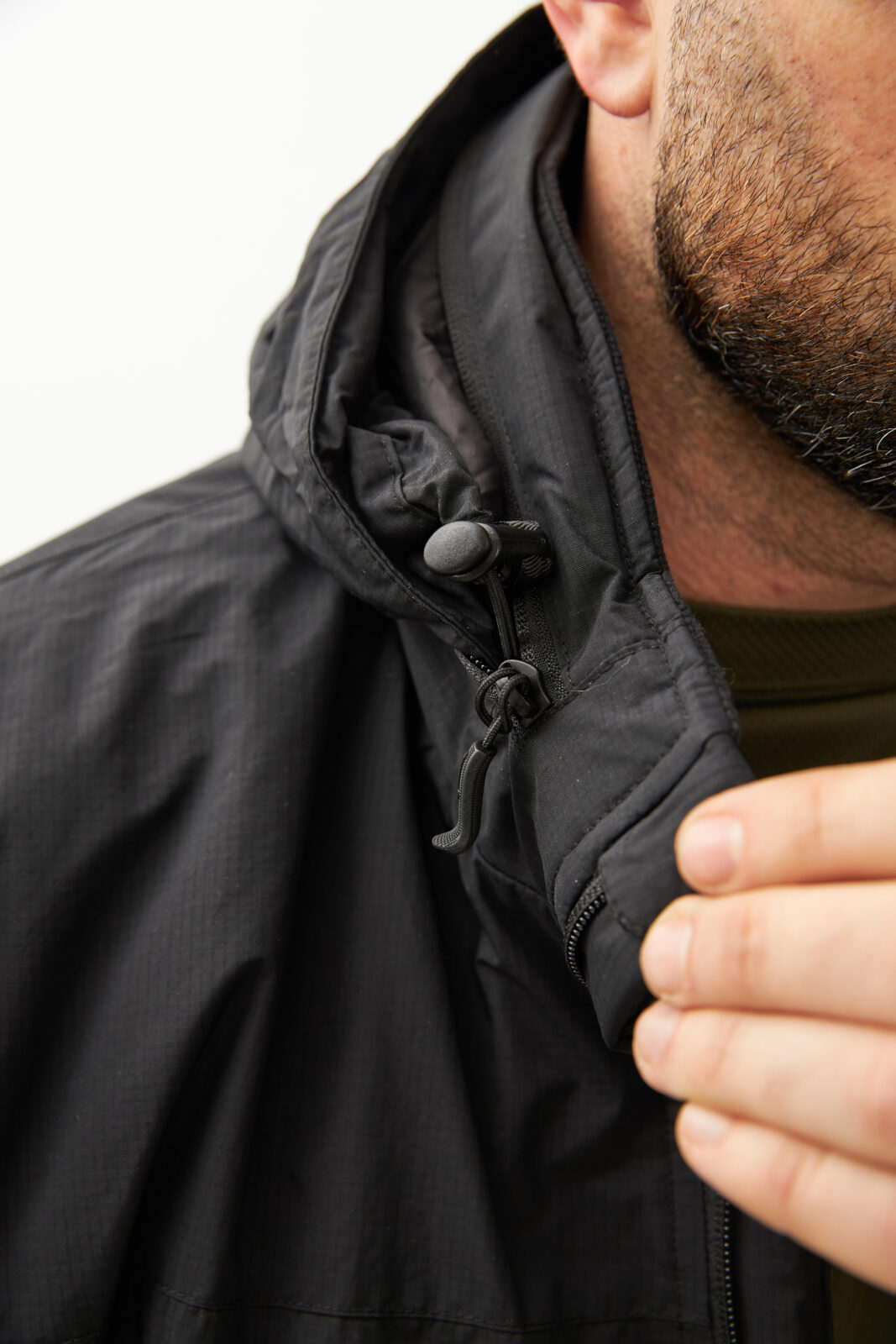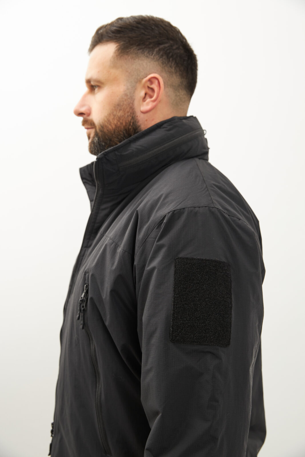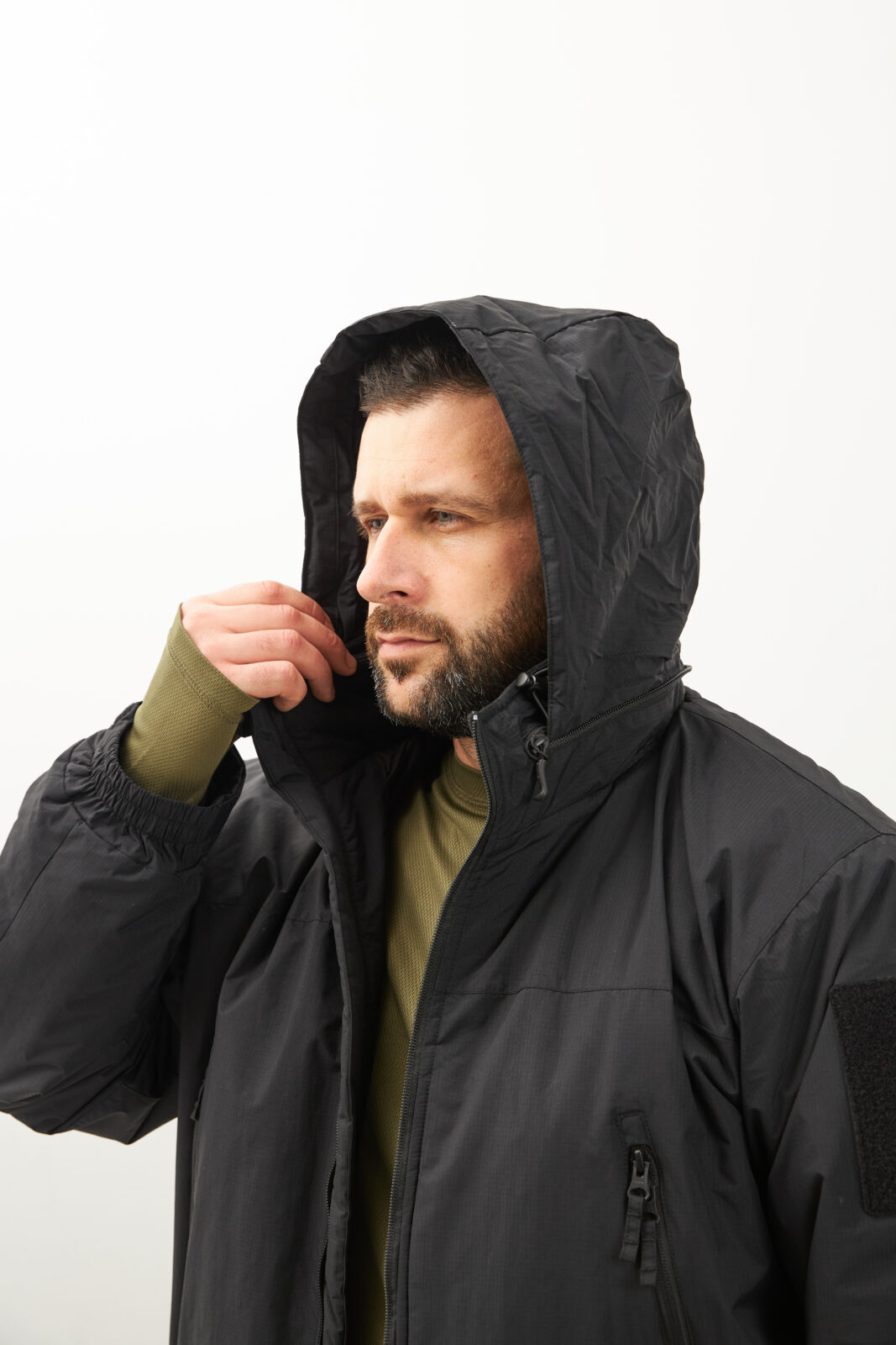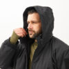 - В воротнике расположен регулируемый капюшон, совместимый с тактическими шлемами