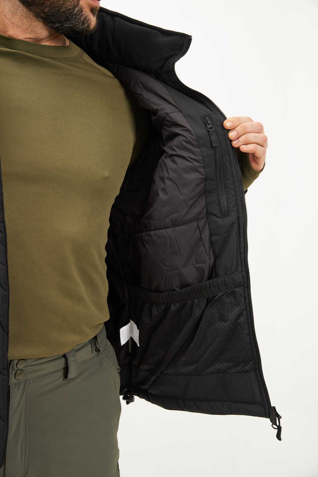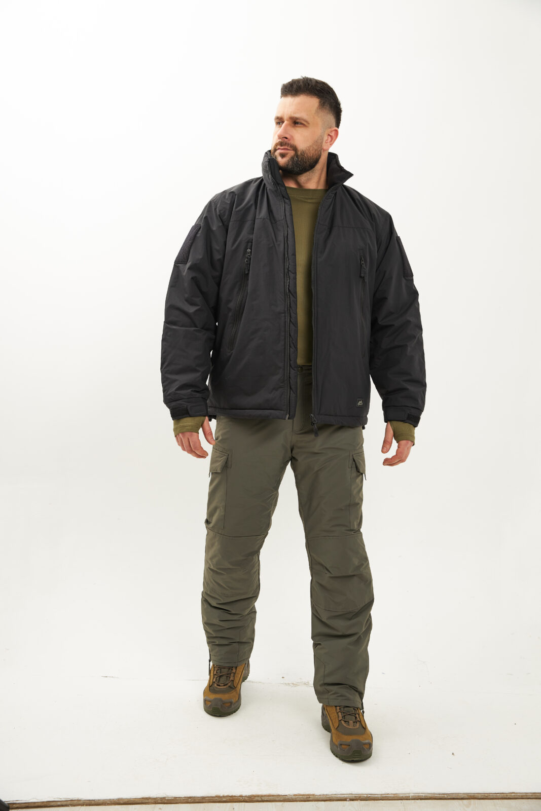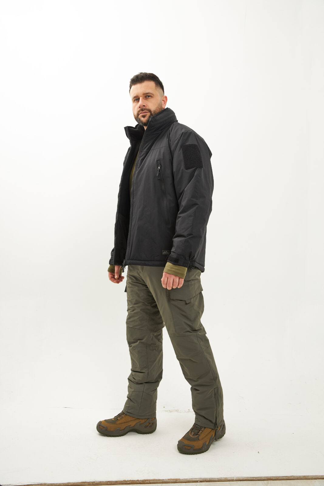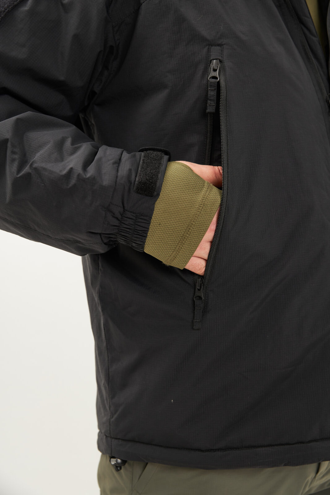- В воротнике расположен регулируемый капюшон, совместимый с тактическими шлемами