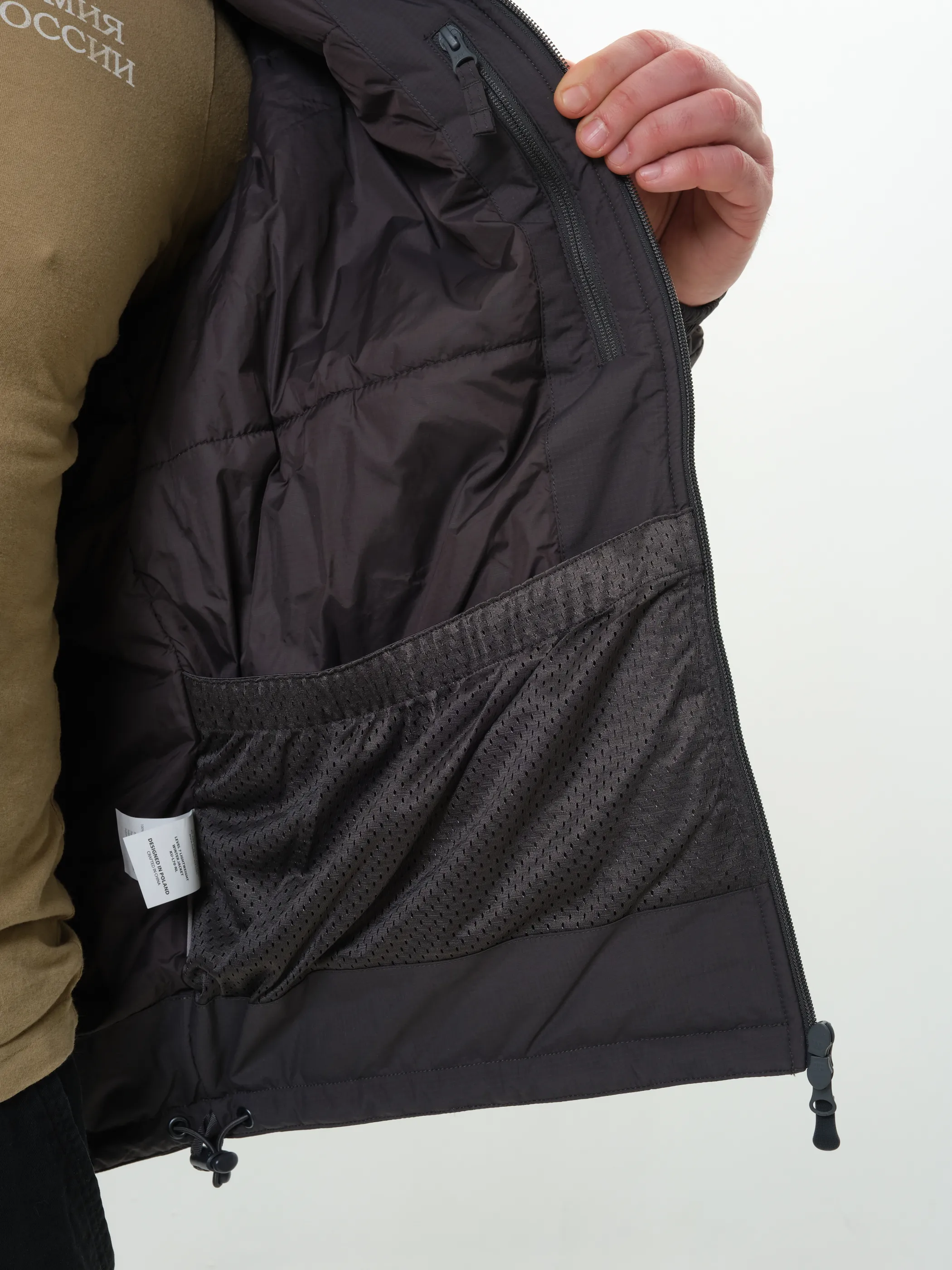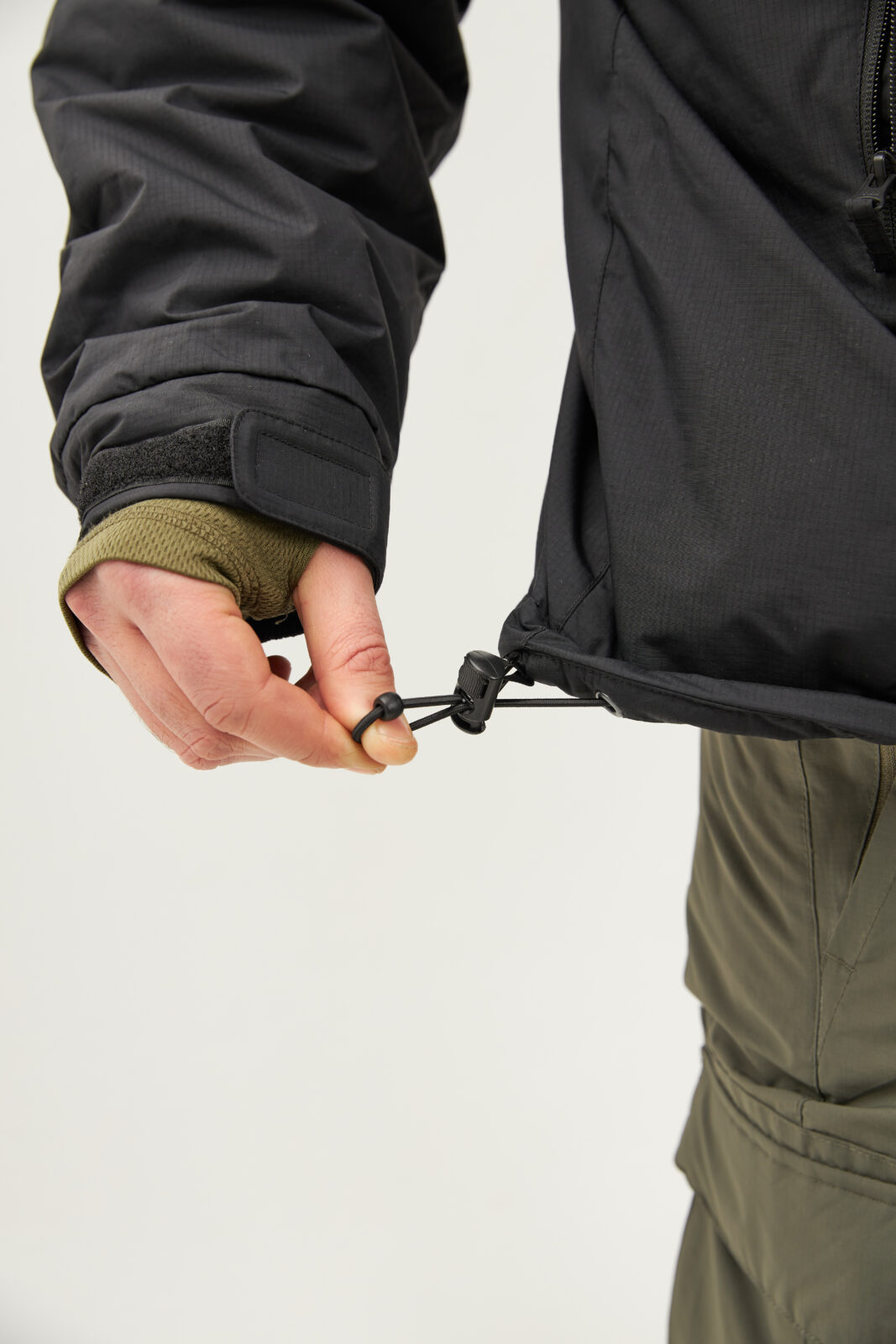 - Эластичные шнуры для регулировки ширины низа куртки
